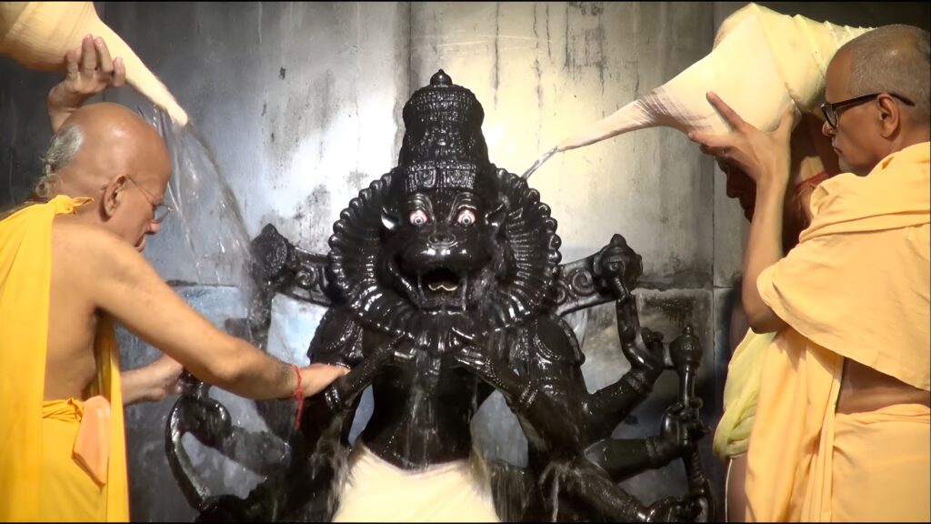 ಕೇವಲ ಮನುಷ್ಯರ ಶಕ್ತಿಯಿಂದ ಇಂತಹ ದುಷ್ಟ ಶಕ್ತಿಗಳನ್ನು ಎದುರಿಸಲು ಸಾಧ್ಯವಿಲ್ಲ ಎಂದು ಅರಿತ ಭಕ್ತರು, ದೈವಿಕ ರಕ್ಷಣೆಯನ್ನು ಪಡೆಯಲು ನಿರ್ಧರಿಸಿದರು. ಆಗ ಅವರಿಗೆ ನೆನಪಾಗಿದ್ದು ಸಾಕ್ಷಾತ್ ವಿಷ್ಣುವಿನ ಉಗ್ರ ಅವತಾರವಾದ ‘ನರಸಿಂಹ ಸ್ವಾಮಿ’. ಅರ್ಧ ಮನುಷ್ಯ, ಅರ್ಧ ಸಿಂಹದ ರೂಪದಲ್ಲಿರುವ, ದುಷ್ಟರನ್ನು ಸದೆಬಡಿಯುವ ನರಸಿಂಹನನ್ನು ದೇವಸ್ಥಾನದಲ್ಲಿ ಪ್ರತಿಷ್ಠಾಪಿಸಲು ಅವರು ತೀರ್ಮಾನಿಸಿದರು. ನರಸಿಂಹನ ಹೆಸರು ಹೇಳಿದ ತಕ್ಷಣವೇ ಅಲ್ಲಿನ ವಾತಾವರಣದಲ್ಲಿ ಒಂದು ವಿಚಿತ್ರ ಬದಲಾವಣೆ ಕಾಣತೊಡಗಿತು.
